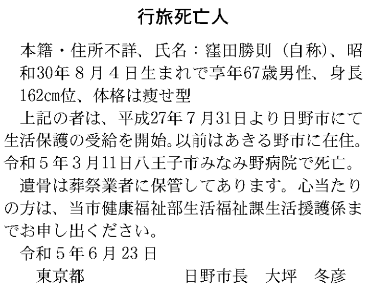 警察は、男性が病死した可能性があるとみて捜査しています。